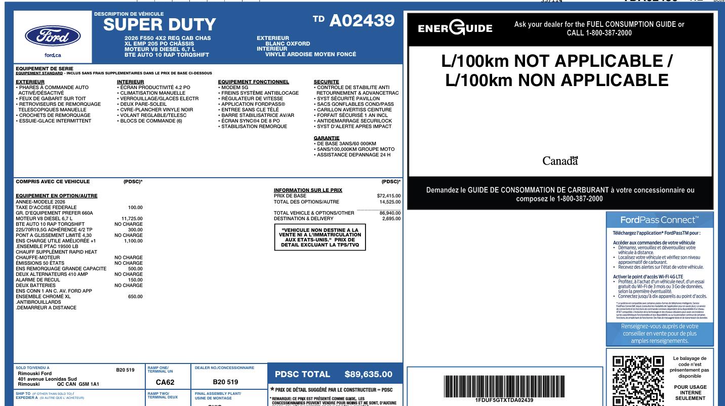 Détails du prix SUPER DUTY F-550 DRW XL CABINE SIMPLE 2RM 205 PO DCE DE 120 PO 2026 #26232