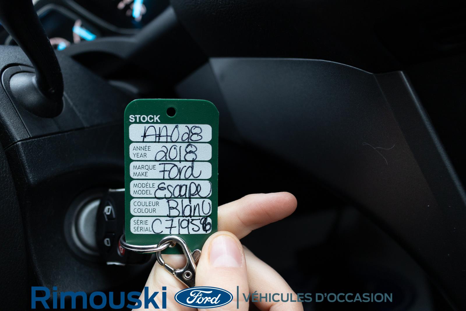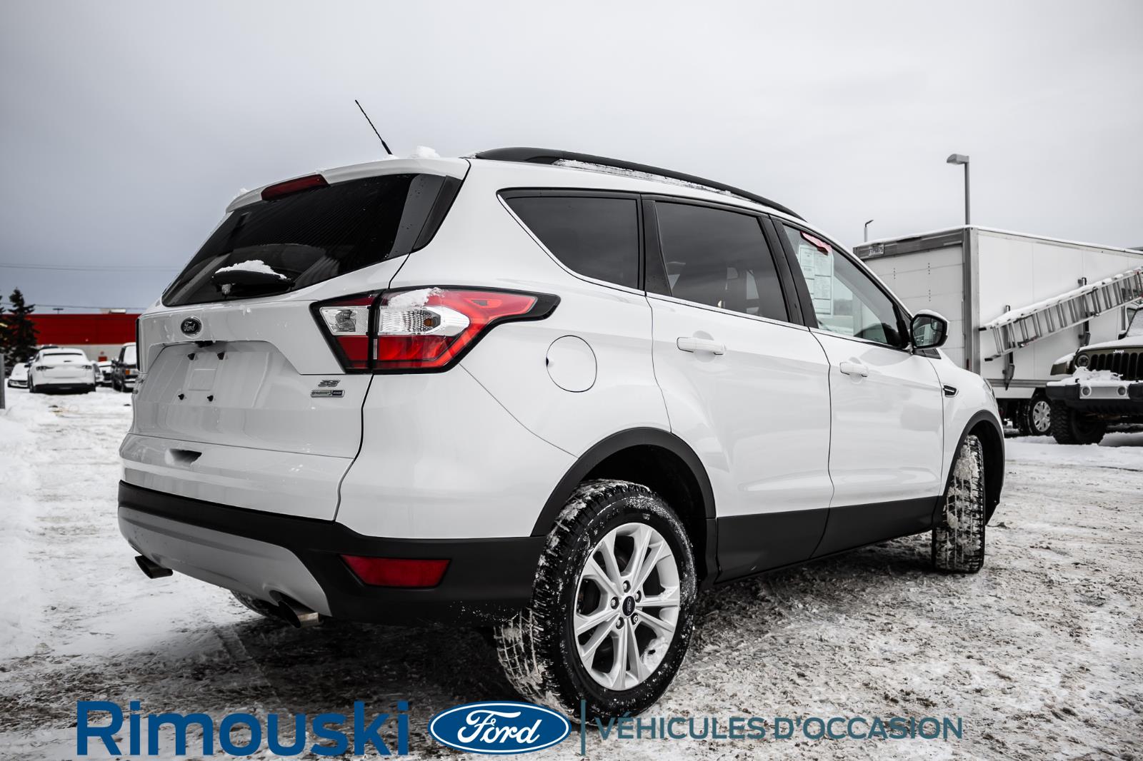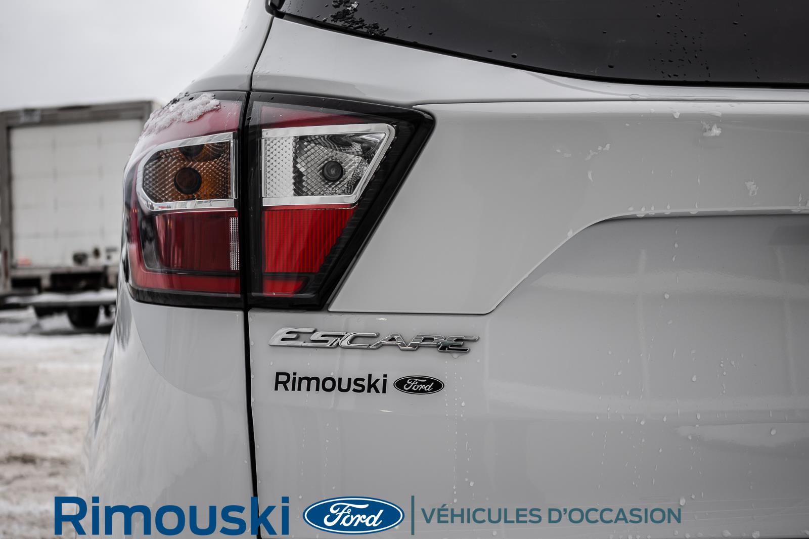 Ce Ford Escape 2018 usagé blanc, transmission automatique - 6 vitesses, avec air climatisé, régulateur de vitesse, sièges chauffants, miroirs chauffants et servo-direction est à vendre chez Rimouski Ford. Réservez l'essai routier de ce véhicule usagé maintenant.