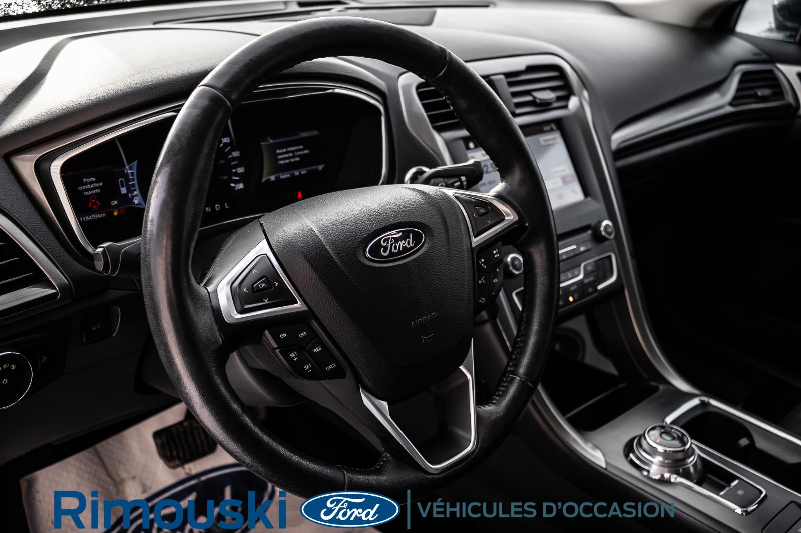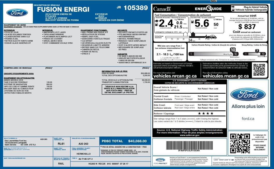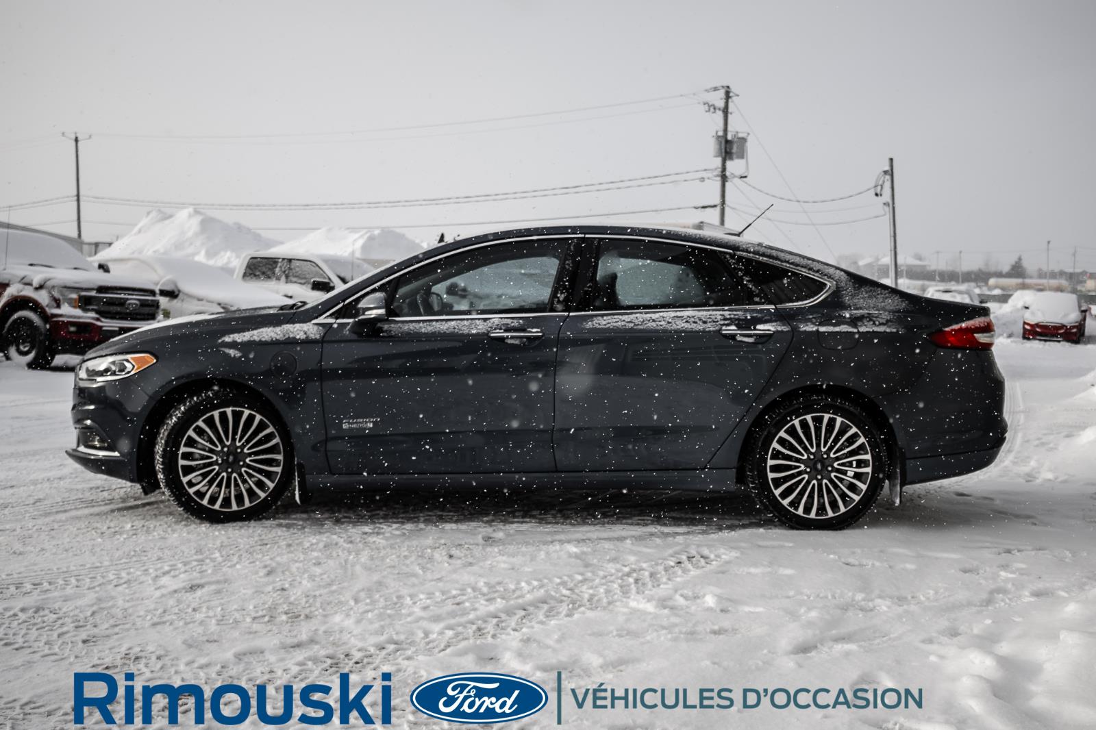 Ce Ford Fusion Energi 2018 usagé bleu, transmission automatique, avec air climatisé, régulateur de vitesse, sièges chauffants, miroirs chauffants et servo-direction est à vendre chez Rimouski Ford. Réservez l'essai routier de ce véhicule usagé maintenant.